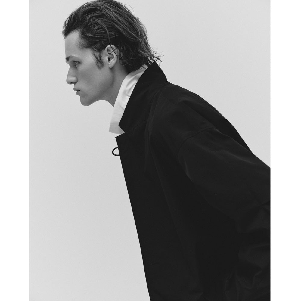 ミリタリーのディテールでもある前振りの袖がデザインアクセント、アクションプリーツを加え、袖口も調整出来るようにデザイン。