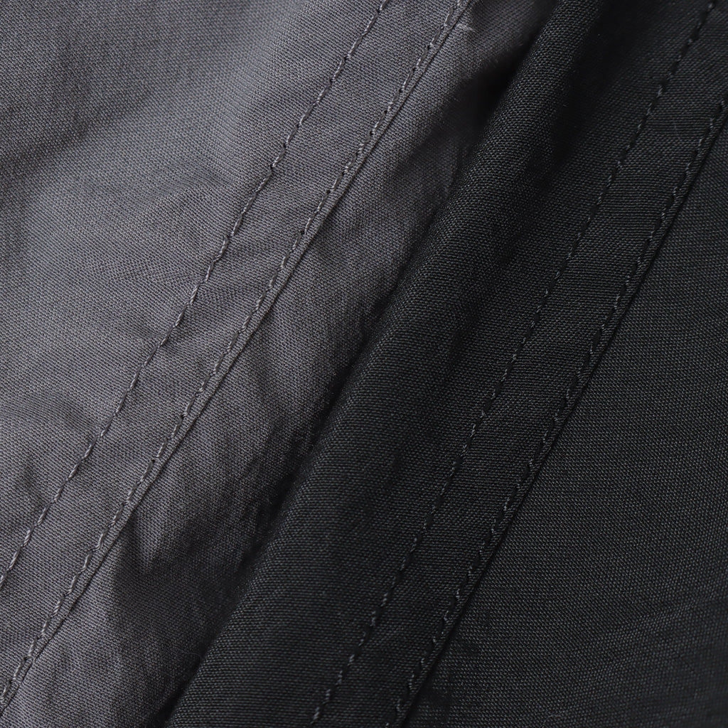 中綿アイテム専用のタフタ素材です。タテ糸にはポリエステル、ヨコ糸にはコットンの素材を特殊な仕上げにより、ラフな表情でありながら光沢感があり、コットンの優しい風合いが特長の、エイトンオリジナル素材です。また、※リサイクルカシミヤを使用した特殊な中綿を使用しています。