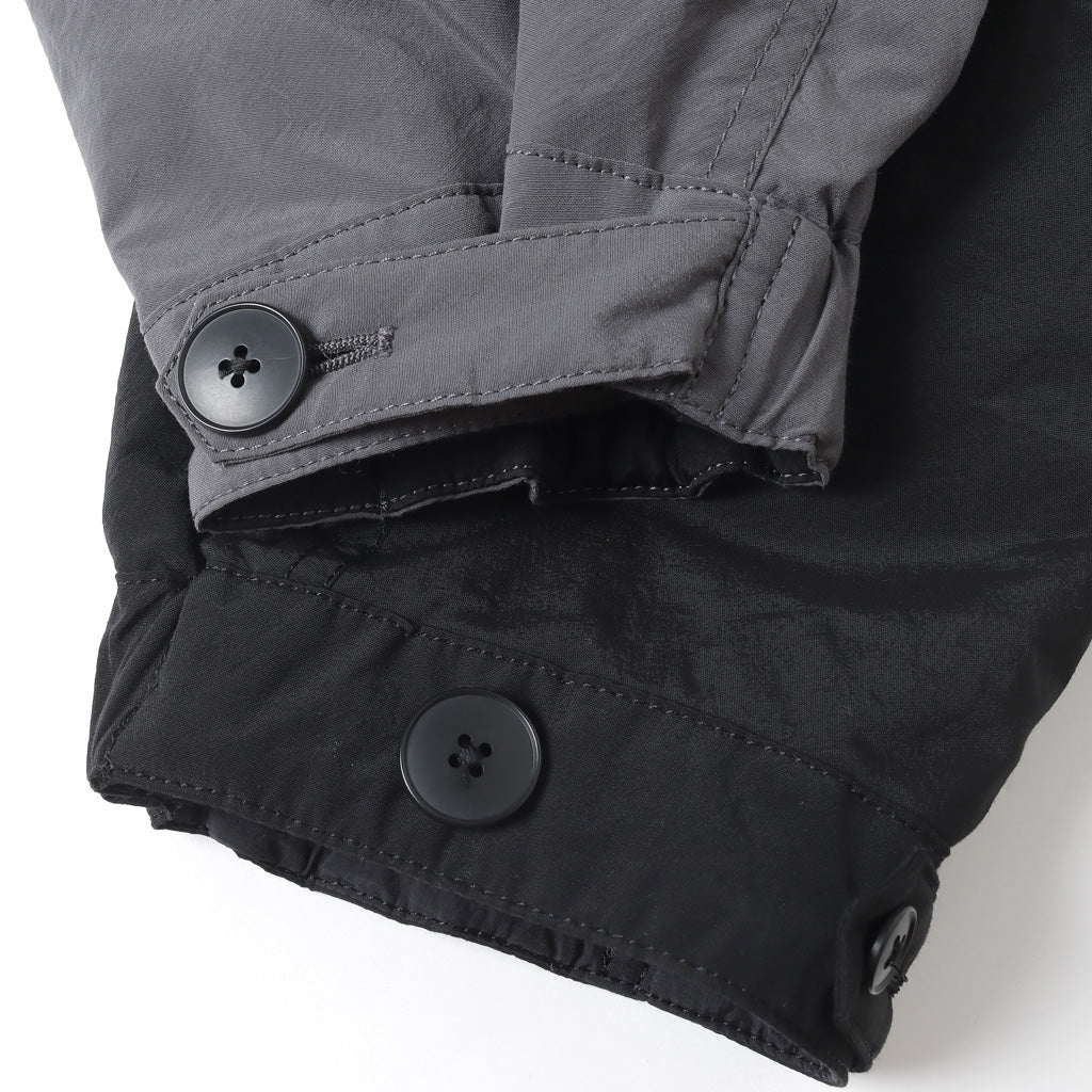 アメリカ軍のM-65モッズコートをベースに、フードを無くし、裾を横方向にスパッと切ったようなデザインで、ブルゾンのような丈が新鮮なショートコートです。
