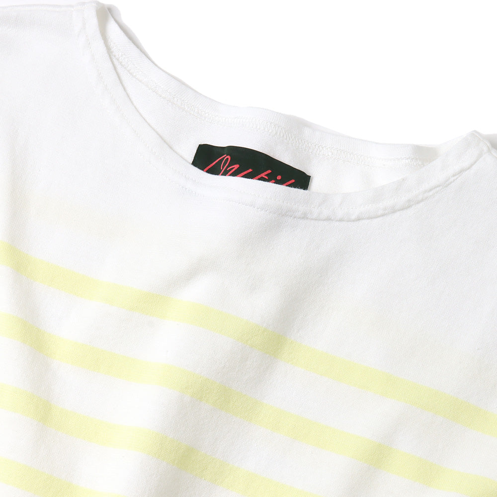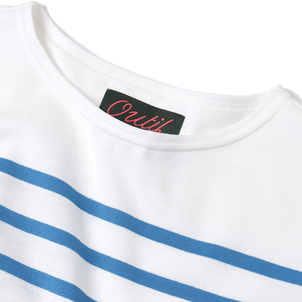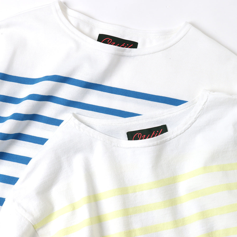 ネックの空きの狭いボートネックのモデルhabas。