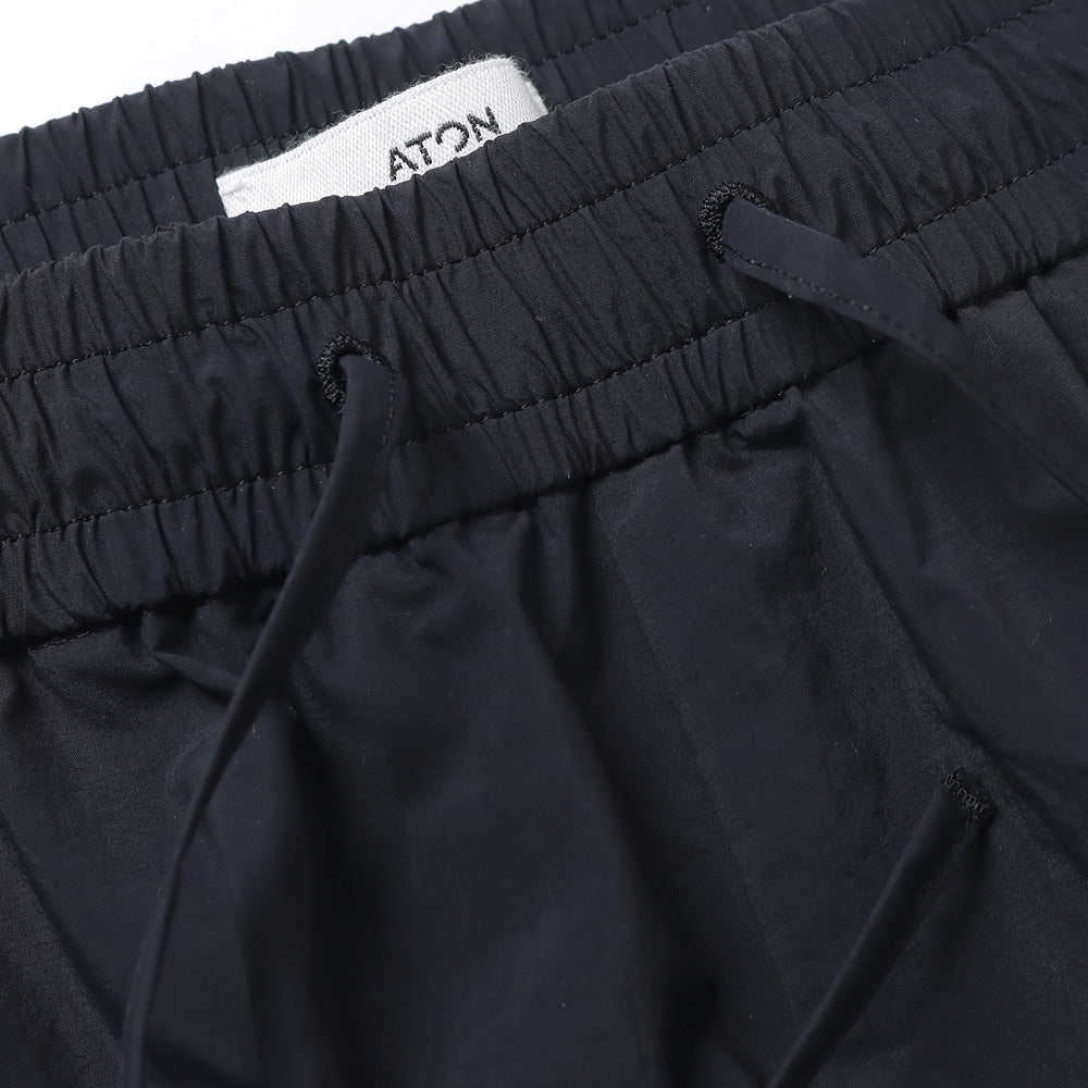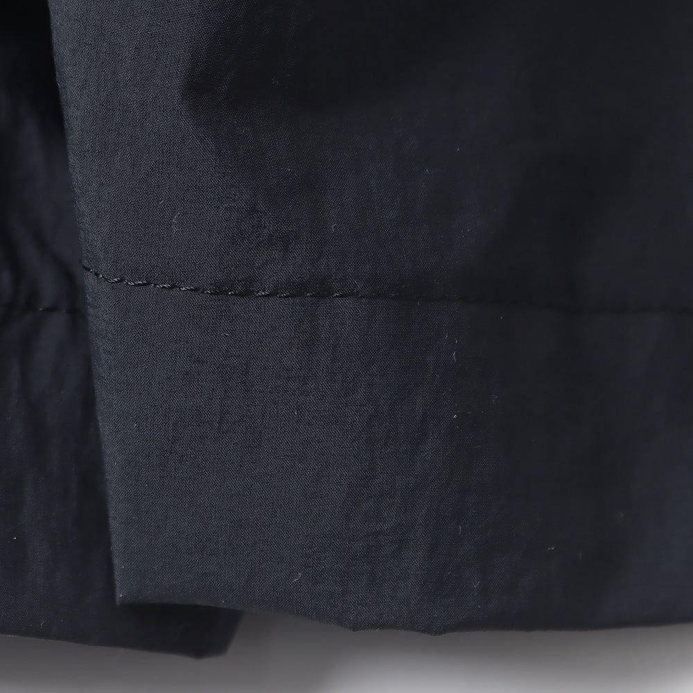 石川県能美市で極細のナイロンを高密度に織られたナイロンタフタ素材です。髪の毛よりも細い極細の糸番手のナイロンタスラン加工糸を使用し、製品での洗いを施す事により、天然繊維のような風合いとハリ感を表現しました。旅行などにも持って行きやすいように非常にコンパクトになり、軽量感・耐久強撥水が特長の、エイトンオリジナル素材です。