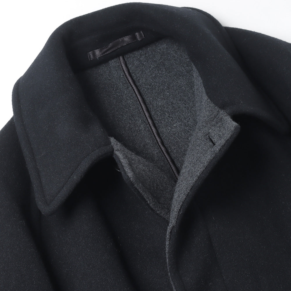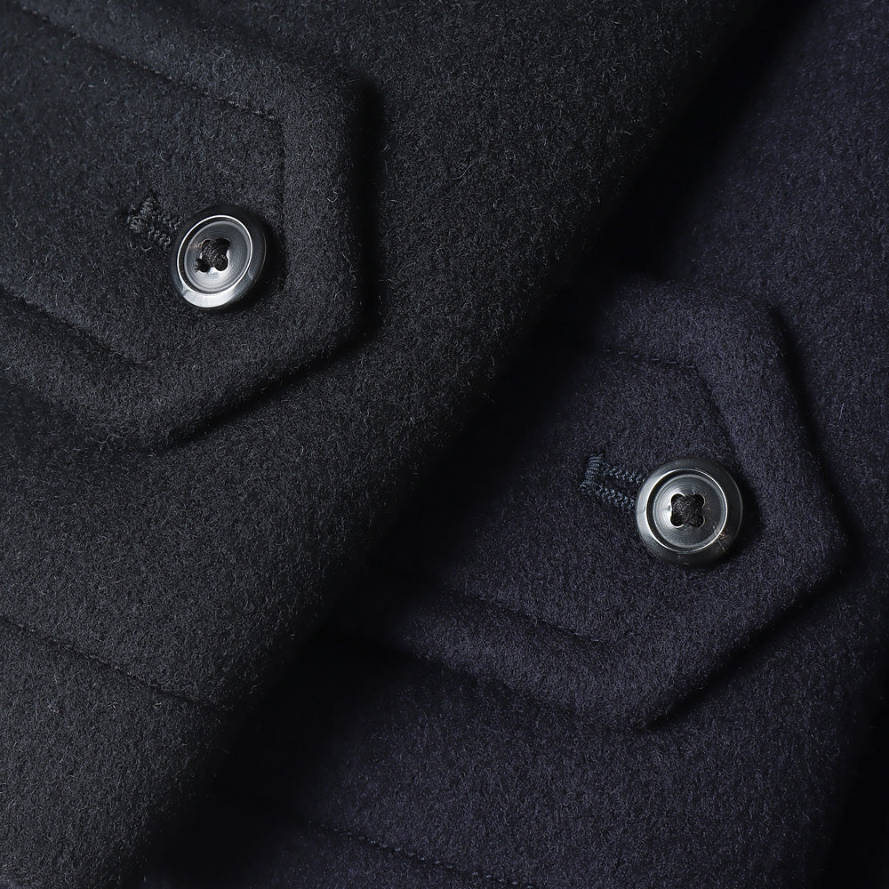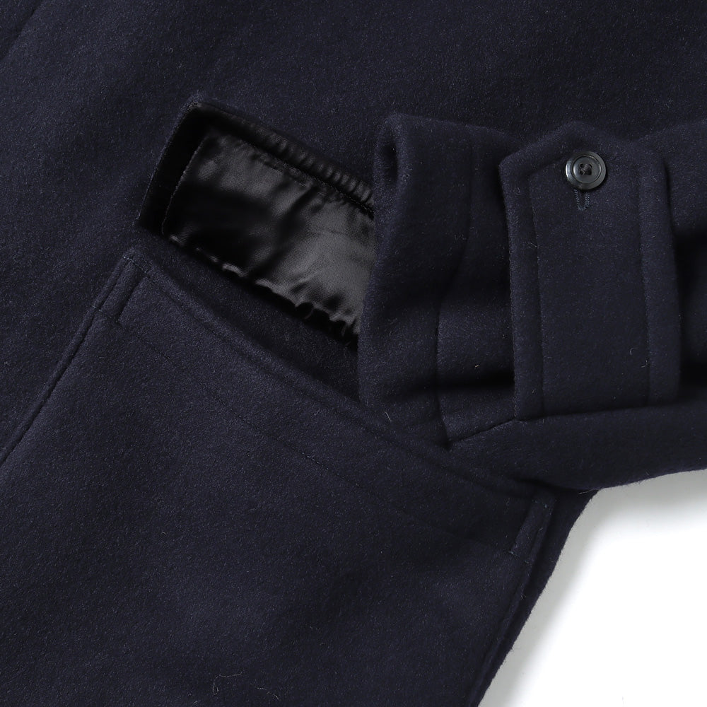 極細ウール繊維、16.5マイクロンのSuper140'sを使用して高密度に織り上げたリバースダブルクロスメルトンです。