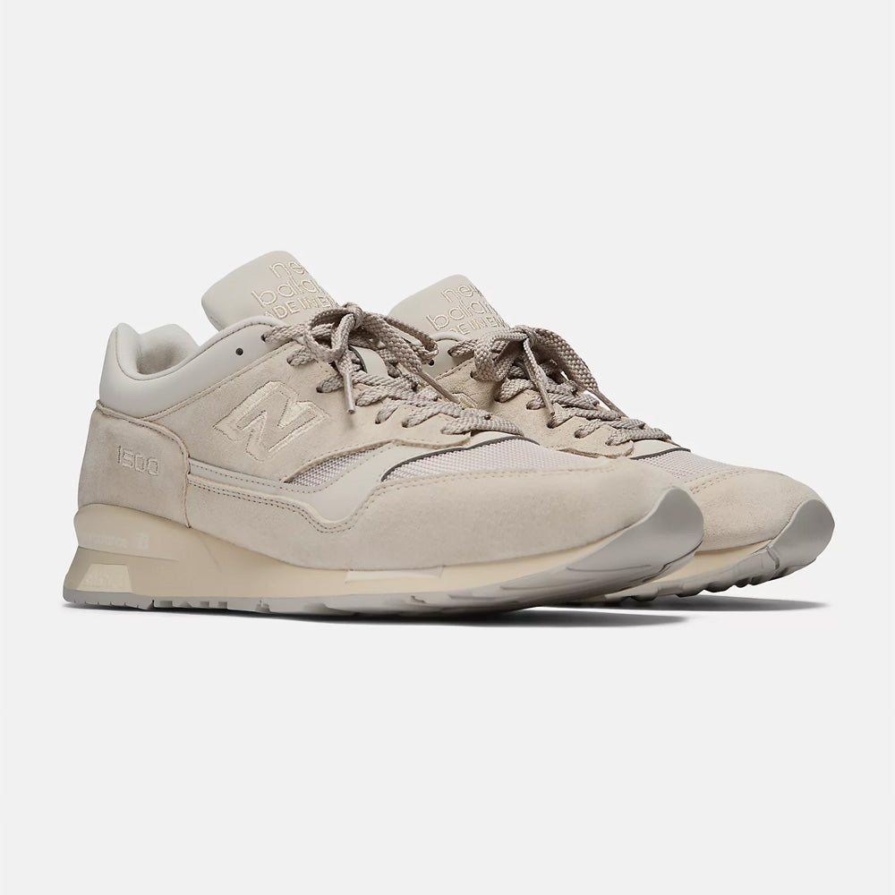 現在でもMADE in UKコレクションの象徴的存在として際立つ1500は、1980年代後期のボリューミーなプロポーションに、クラシックなピッグスキンスエードとメッシュの組み合わせを採用し、日常使いに最適なステートメントピースとなっています。