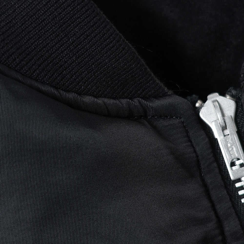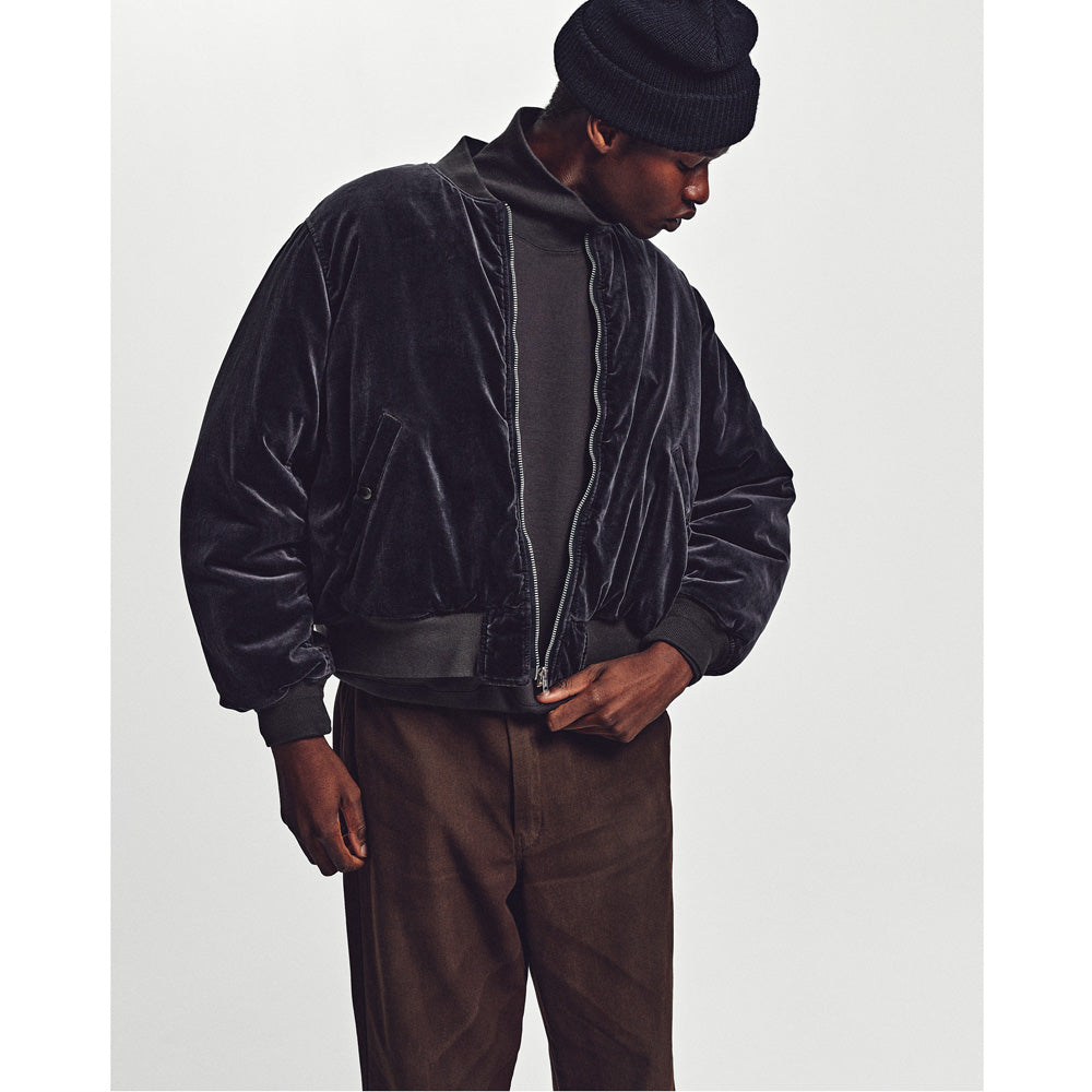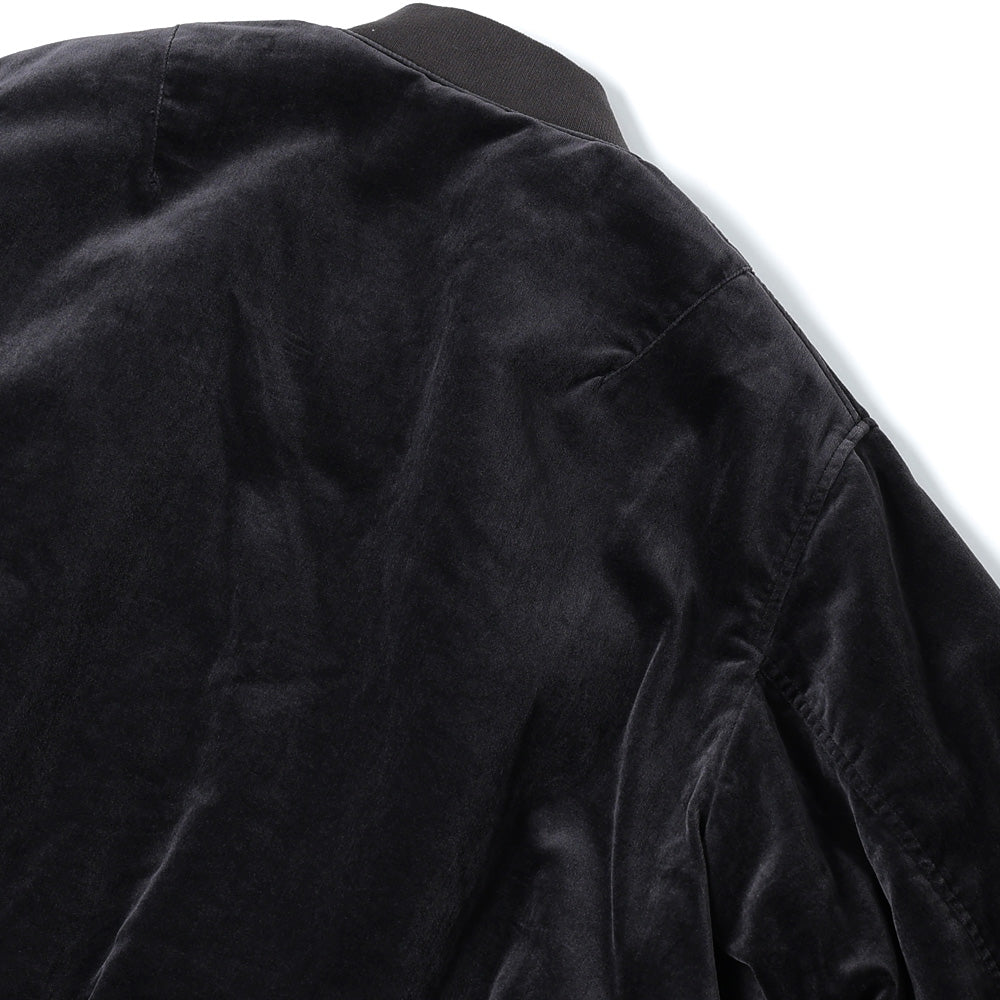 特徴的なA面はMA-1デザインでありながらもベロア素材を採用、B面はMA-1の裏地を活かしつつ、サイドにハンドウォーマーポケットを追加することで、両面着用を可能にしました。