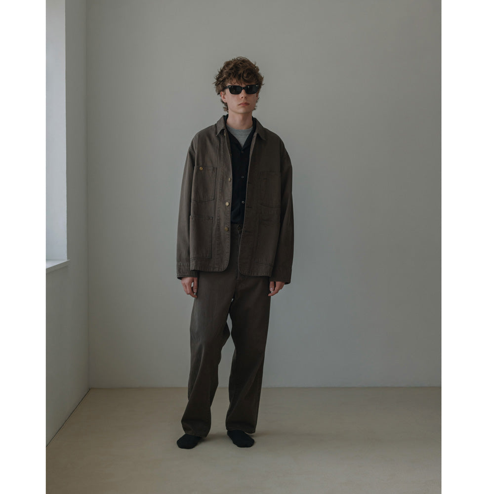 カラーデニムにオーバーダイを行い、先染めでは表現できない色感と経年変化を経たかのような表情に仕上げました。