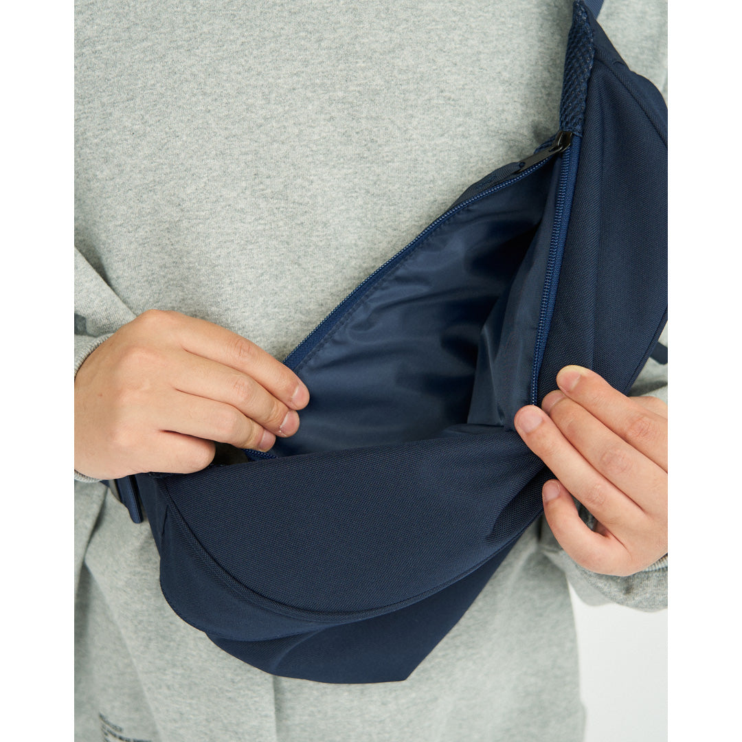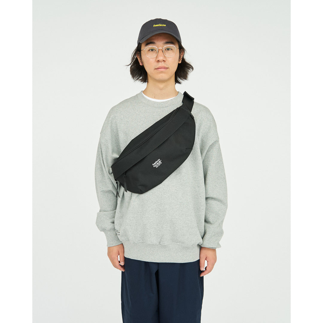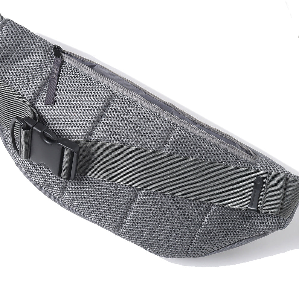 FreshServiceオリジナルのベルトバッグ。収納力抜群のファスナーつきメインコンパートメントに加え、内側と裏面にもファスナーポケットを配備した充実の収納力が魅力。体と接地する背面には蒸れを防ぐパッド入りメッシュ素材を。ショルダーベルトを調整するバックルは2分割が可能な為、かさ張る上着の着用時でも容易に着脱が可能。