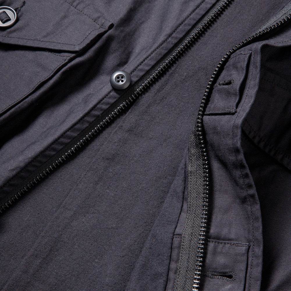 しっかりとしたバックサテン生地を使用した、ディテール満載のユーティリティージャケットです。