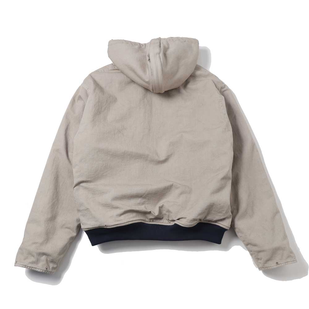 ZIPで中央が開くフードはボタンデタッチャブル仕様