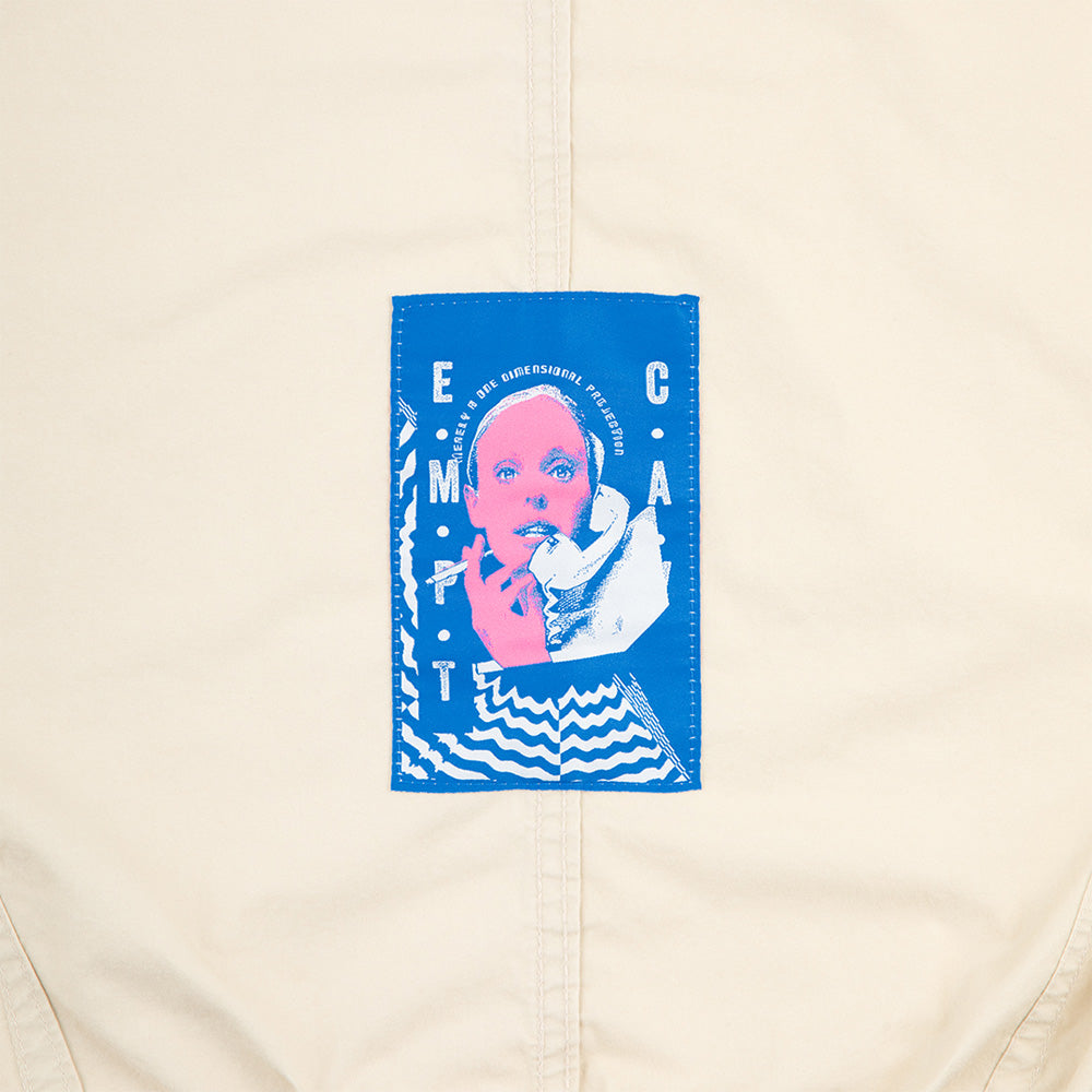前身頃ショルダーに刺繍でCAV EMPT。後ろ身頃裏に布パッチ。