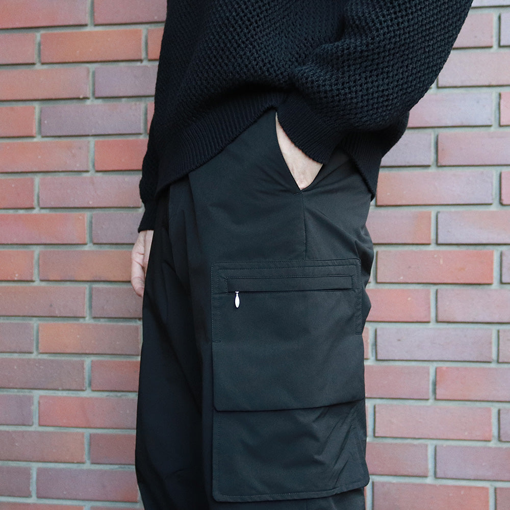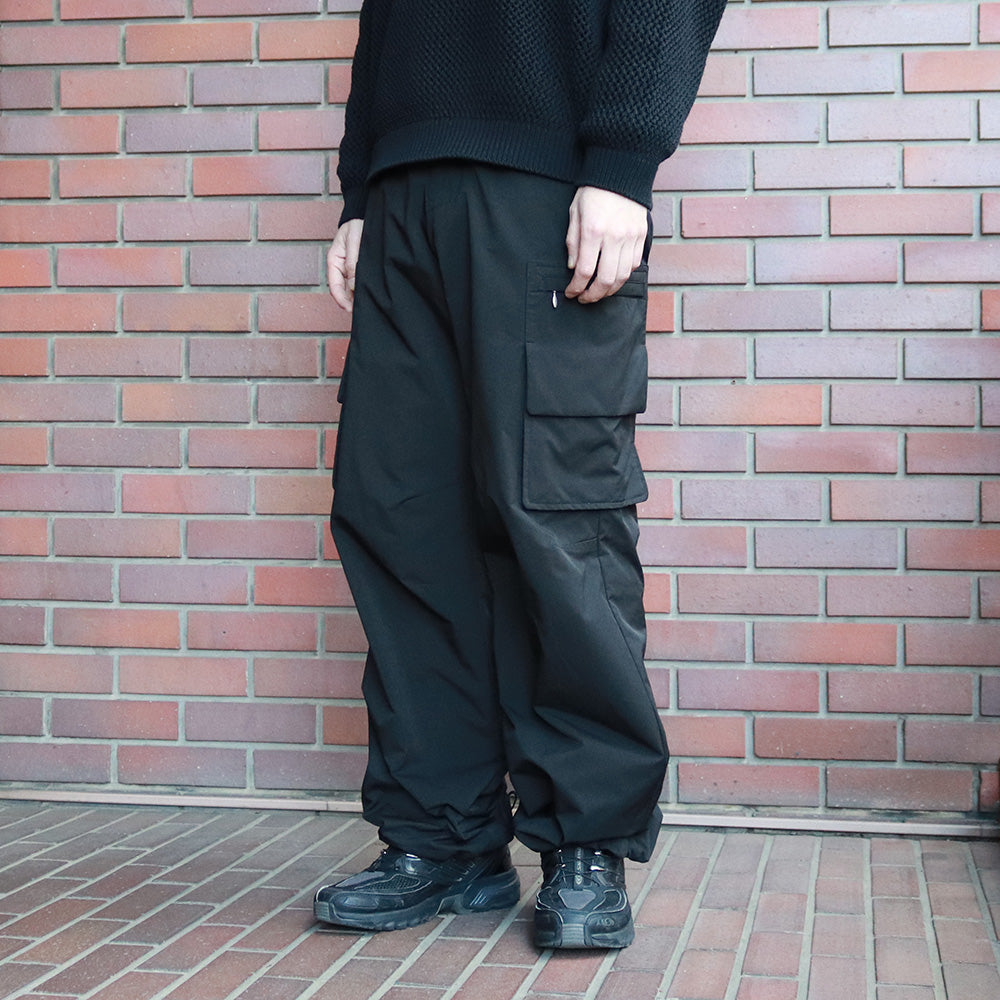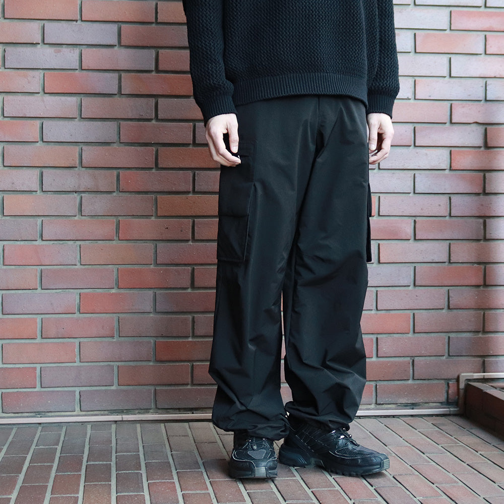 ⾼密感と形状記憶感のあるワイドカーゴパンツになります。