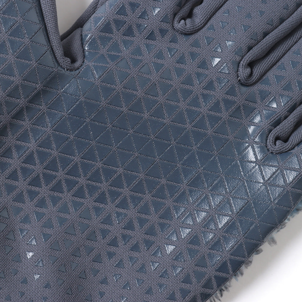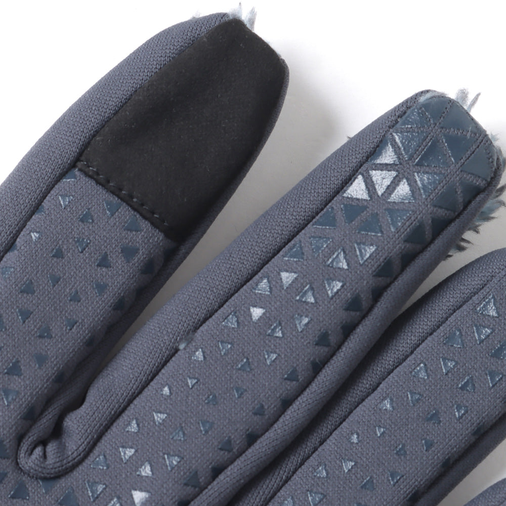 オリジナルのプリントフリースとニット素材の異素材のコンビネーションが特徴のグローブ。WINDSTOPPER®の裏地を使用しているため、自転車やバイクに乗る際に風を通さず、オリジナルのトライアングル柄のグリップが、掴んだものをしっかりホールドする。タッチパネル対応。