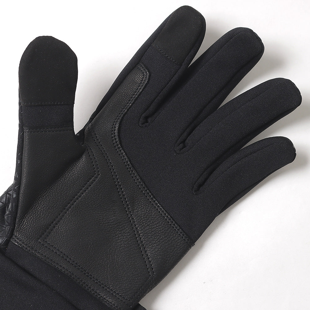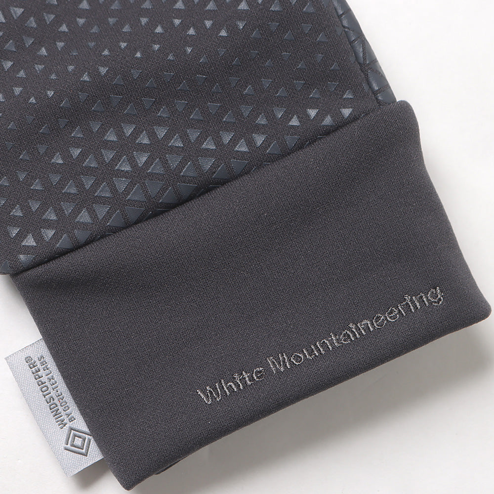 WMオリジナル総柄を甲全体にプリントしたグローブ。WIND STOPPER の裏地を使用し、バイクや自転車に乗る際に風を通さない仕様。着用したままガジェット操作が可能なタッチパネル対応。