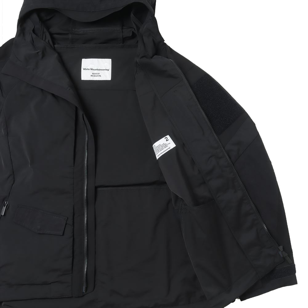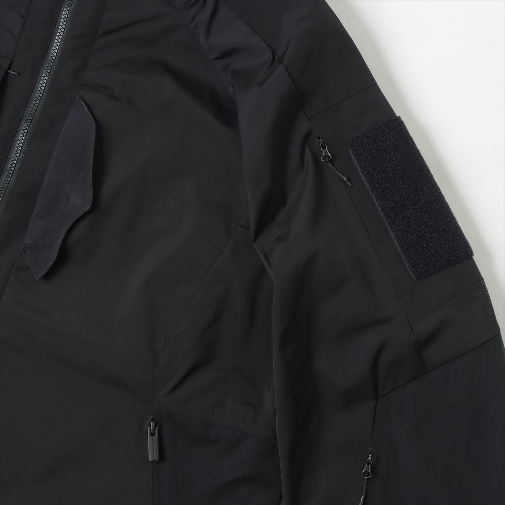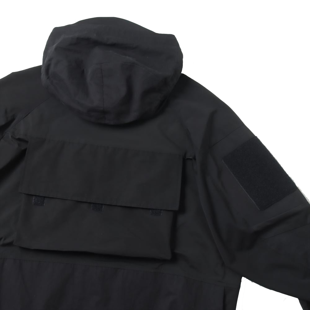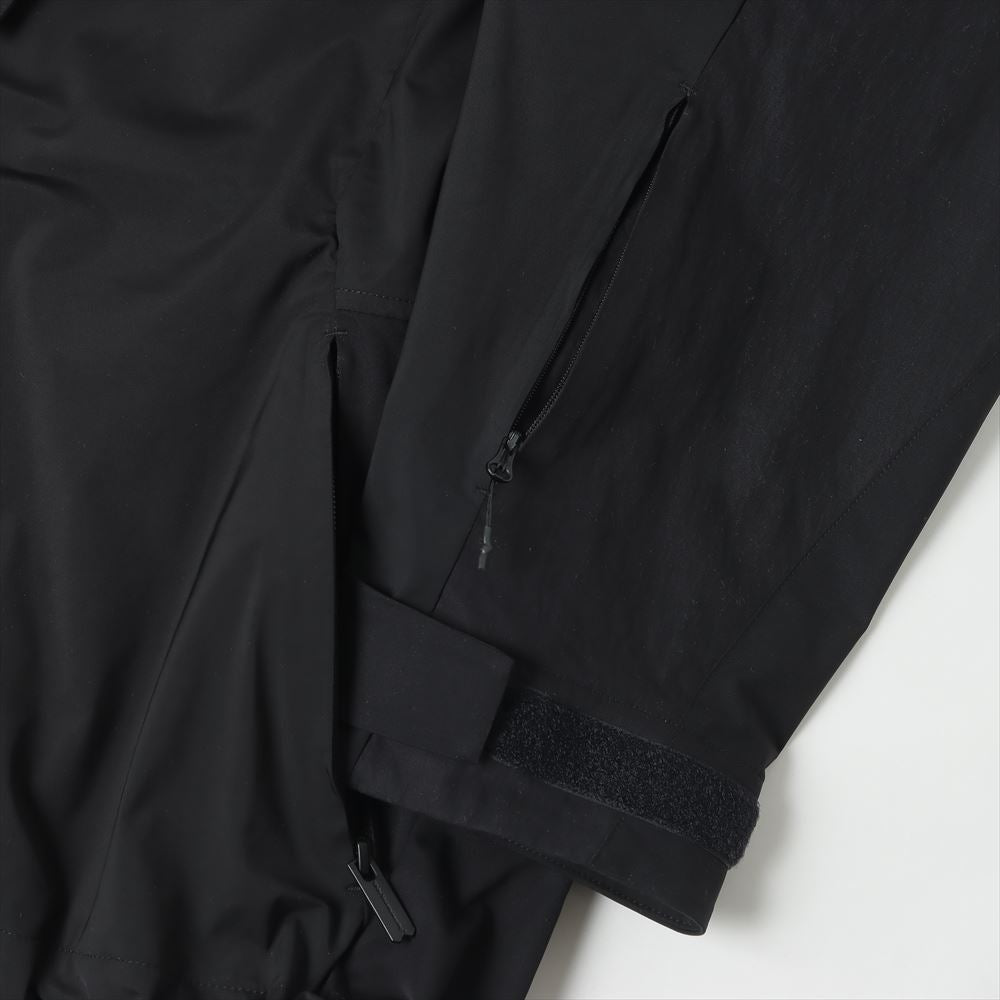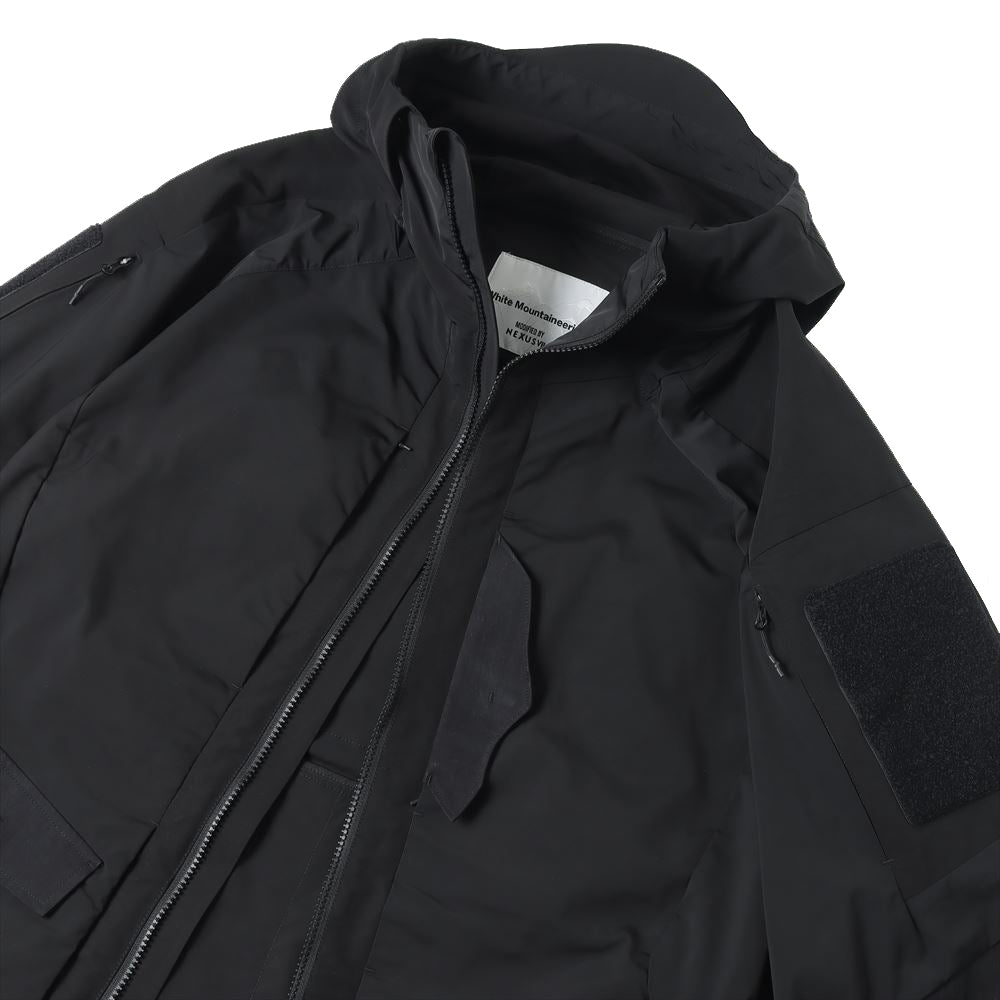 フロント・袖・後身頃に計12カ所のファスナーポケットを配したラゲッジマウンテンパーカをベースにNEXUSⅦがモディファイ。パーツごとに数種類の生地を落とし込み、新たに数種類の外付けのポケットを配置しました。素材特性の形状記憶でシルエットが出やすく、マットな質感も増します。