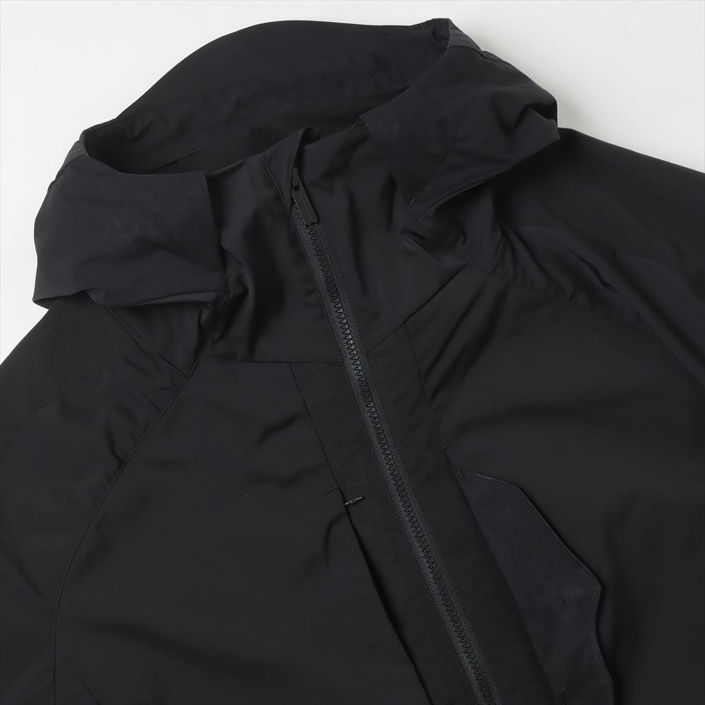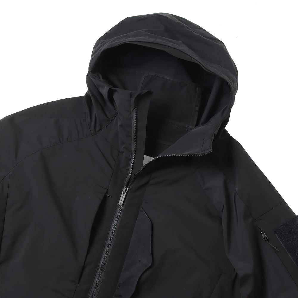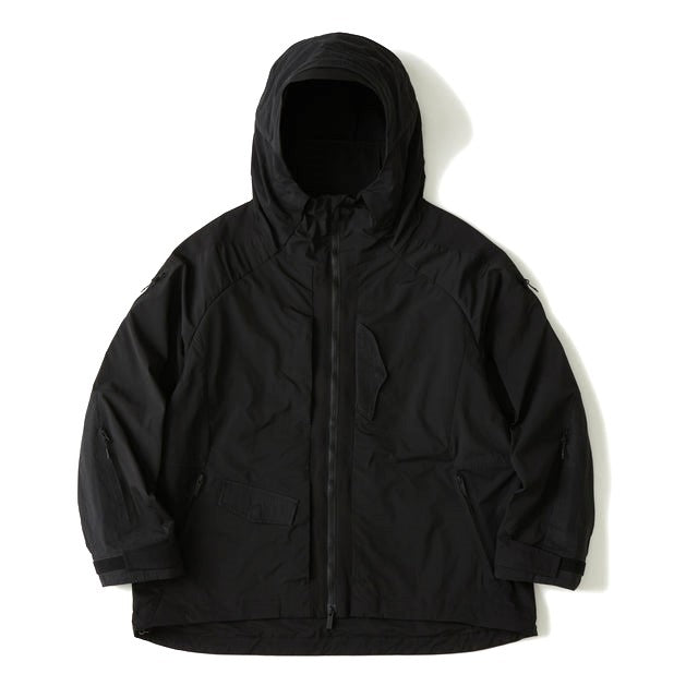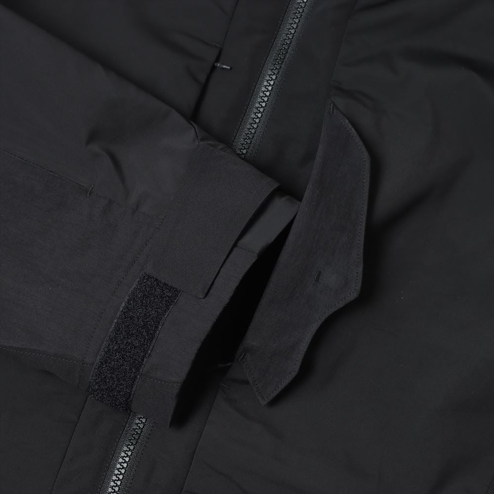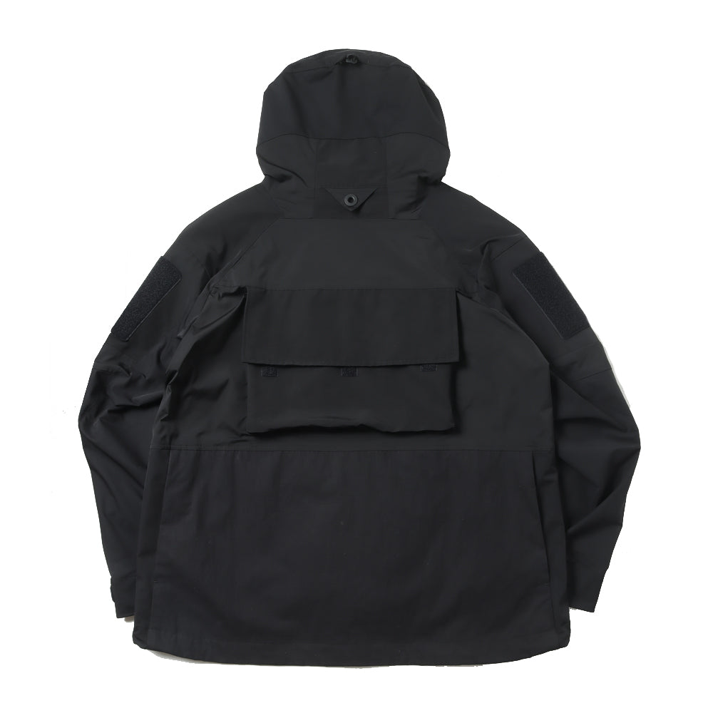 フロント・袖・後身頃に計12カ所のファスナーポケットを配したラゲッジマウンテンパーカをベースにNEXUSⅦがモディファイ。パーツごとに数種類の生地を落とし込み、新たに数種類の外付けのポケットを配置しました。素材特性の形状記憶でシルエットが出やすく、マットな質感も増します。