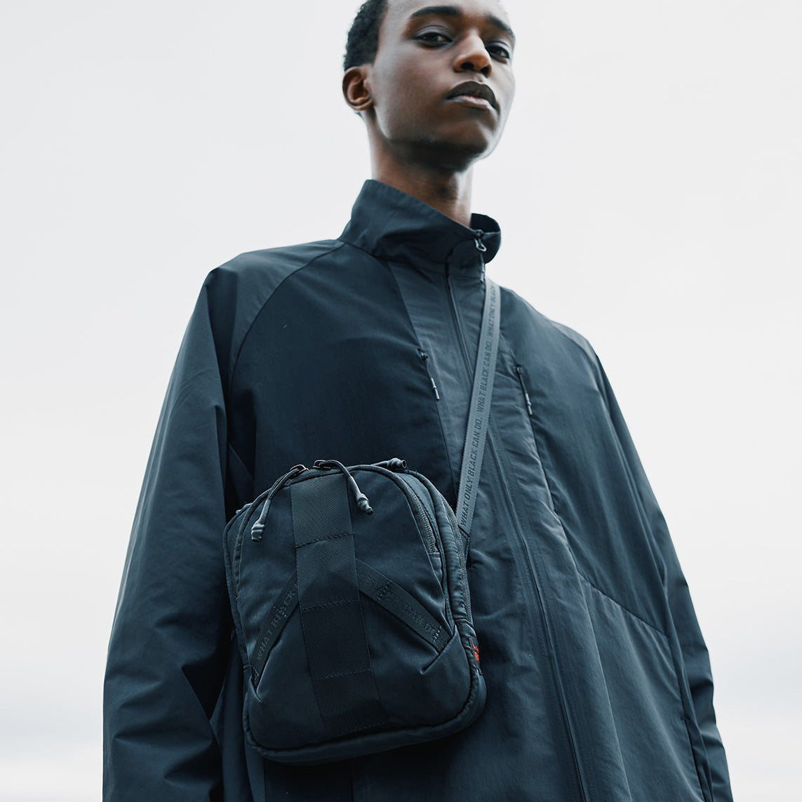 マットな質感が特徴的なスエード調の生地を前面/背面に使用したBriefingとのコラボレーションのミニショルダーバッグ。普段使いから旅行のサブバッグなど、様々なシーンで使用可能。