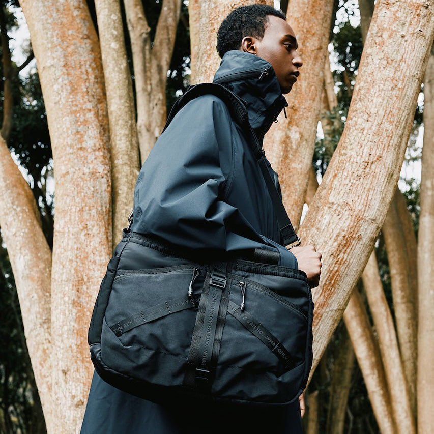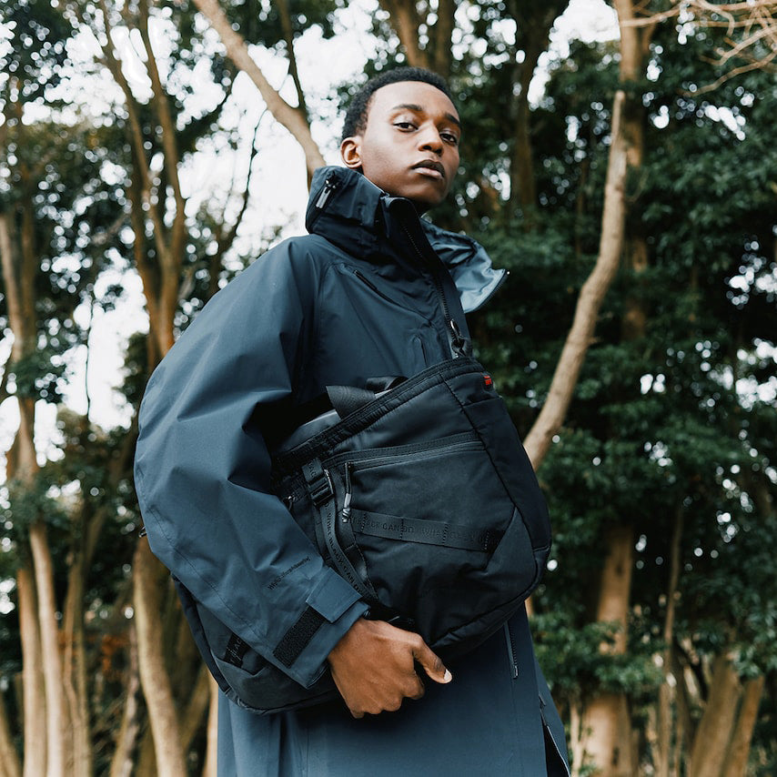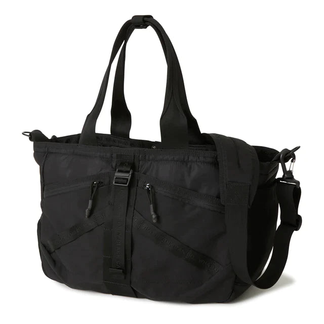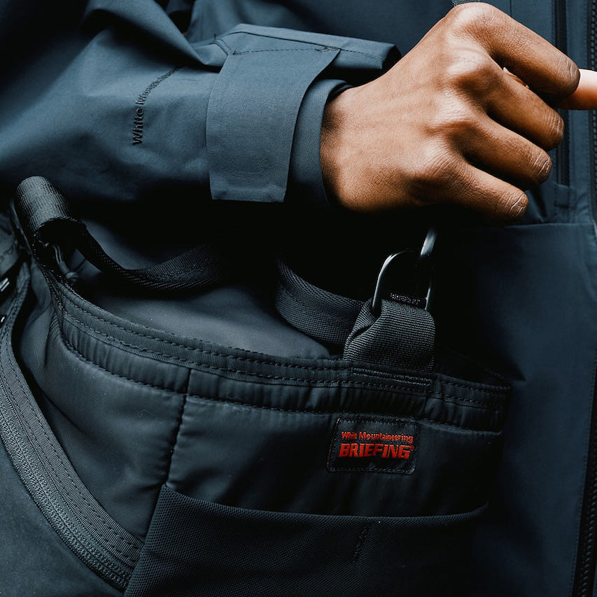 マットな質感が特徴的なスエード調の生地を前面/背面に使用したBriefingとのコラボレーションのトートバッグ。メインポケット以外に12個の付属ポケットを配置。内蔵された雨除け用の上蓋フラップはファスナーで開閉可能。付属のショルダーベルトで肩掛けのカバンとしても使用可能。