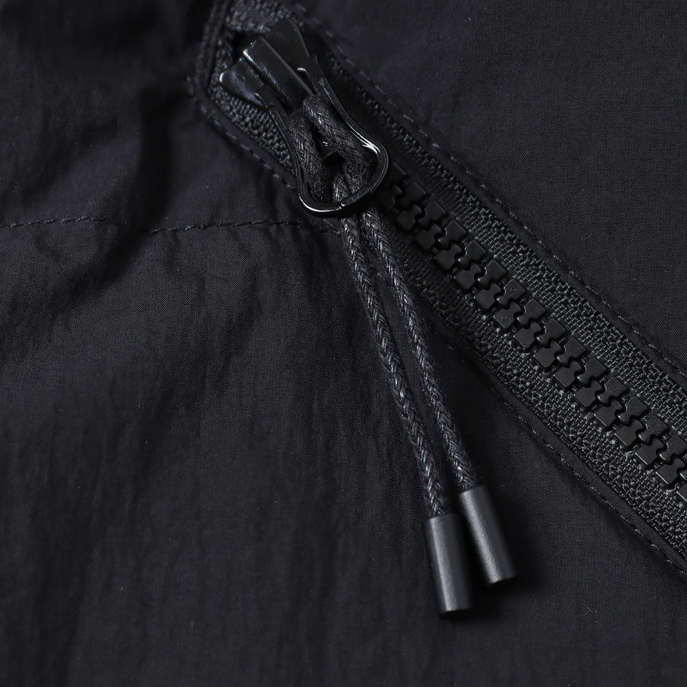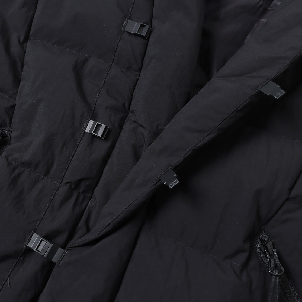 75Dの高密度に打ち込まれた軽くハリ感のある天然ライクな風合いのナイロンタイプライターを使用。定番のハンテンダウンをベースに、前開きをシリコンバックルに変更。