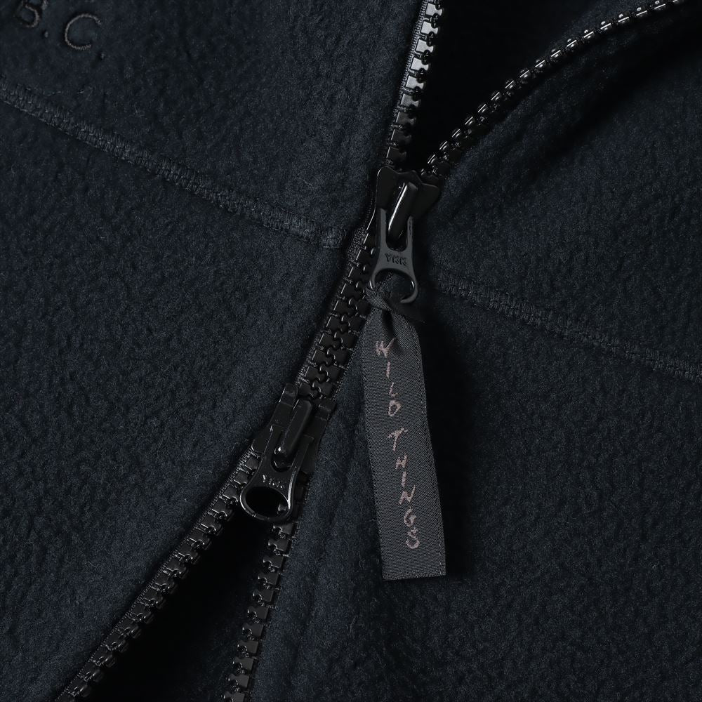 アメリカ発のアウトドアブランドWILD THINGSとのコラボレーションアイテム。 程よくゆったりとしたスタンドカラージップアップフリースジャケット。 両面ボアのフリース素材を使用し、保温性に優れ、軽い着心地。 身頃裏のドローコードでシルエットの調節が可能。 右胸にW.M.B.C.、左胸にWILD THINGSの刺繍ロゴがそれぞれ入ります。