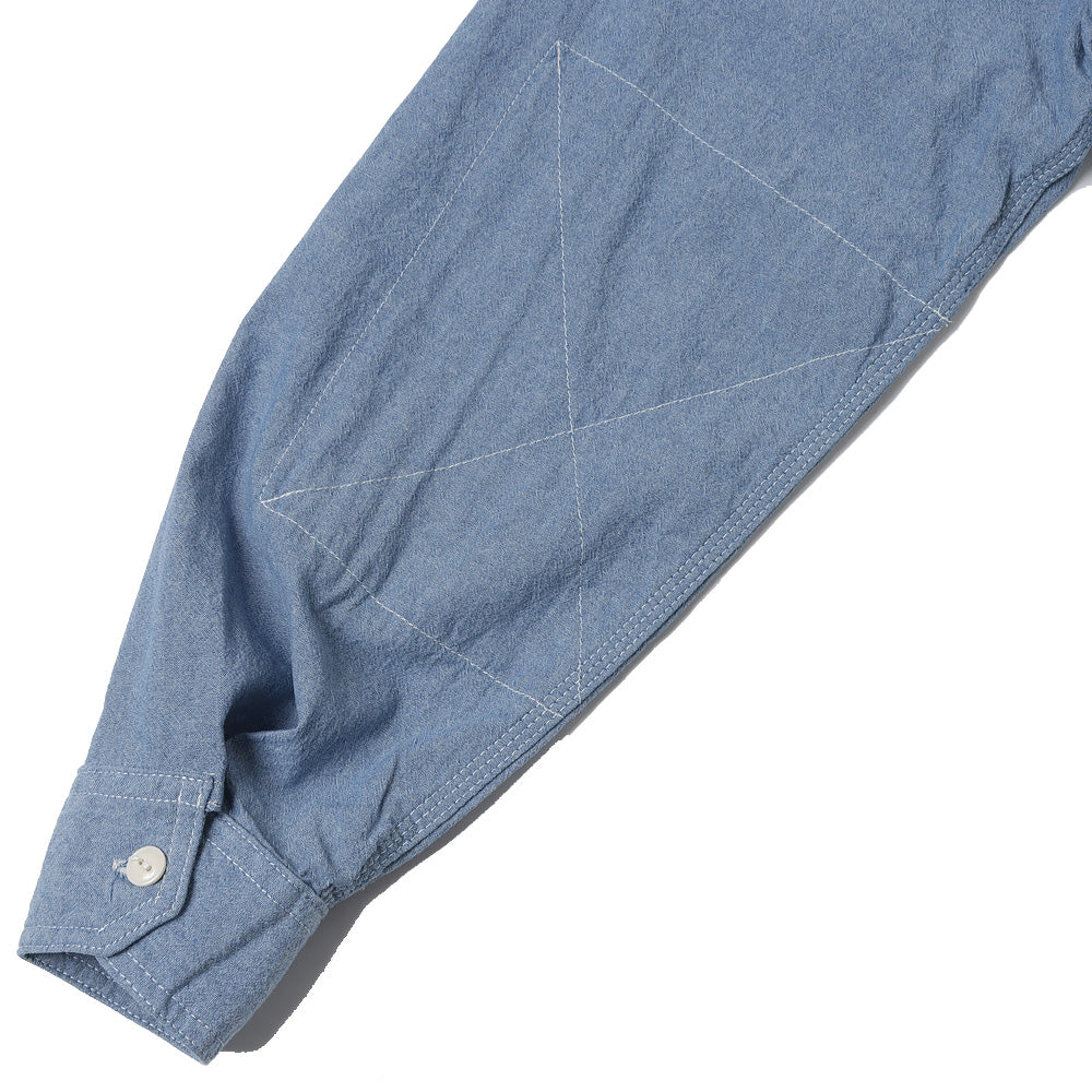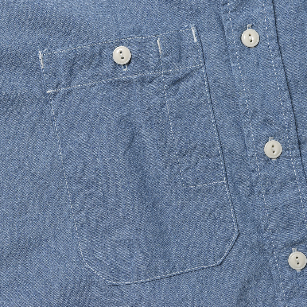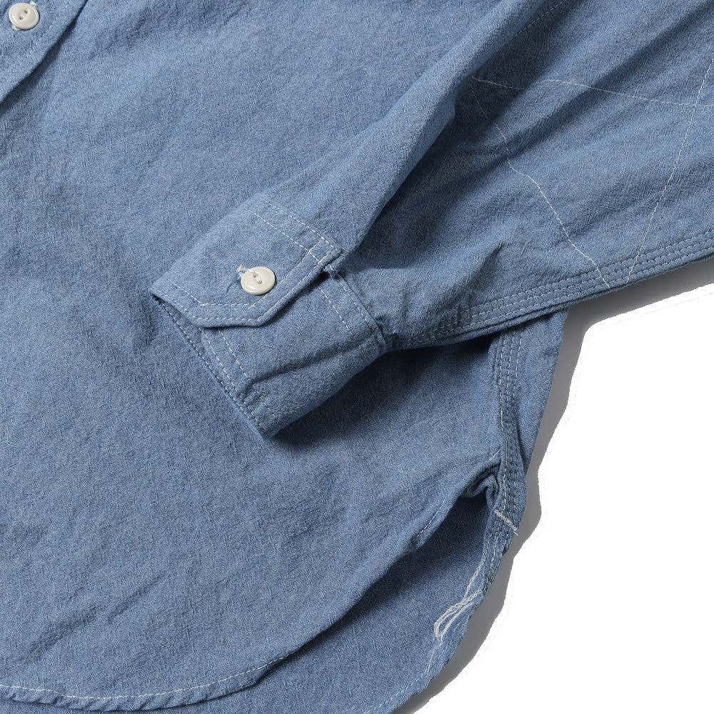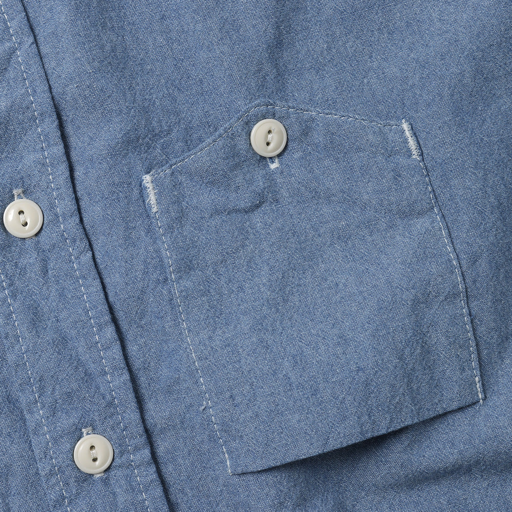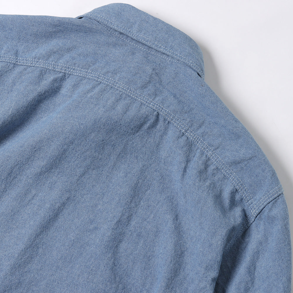 ワークシャツらしくライトオンスのシャンブレー素材を使用した、シーズンを超えて活躍する一着です。