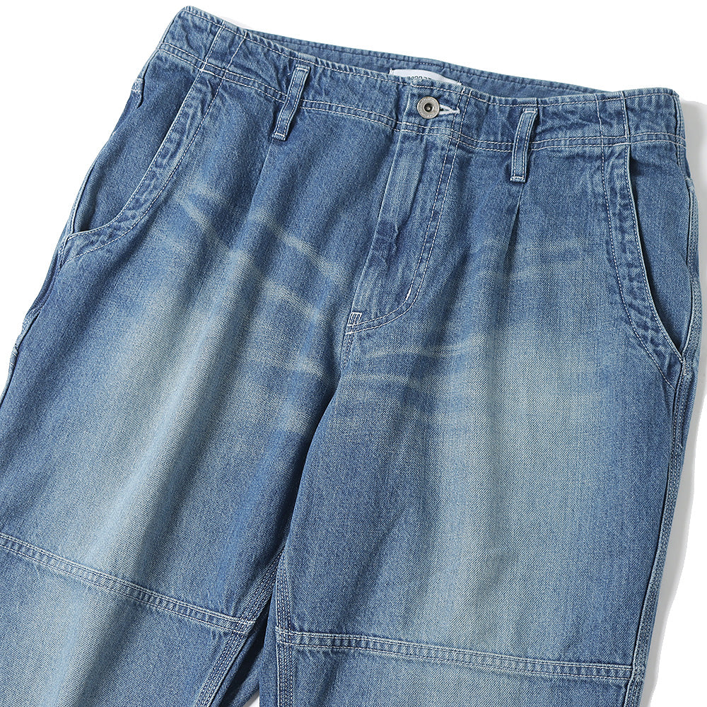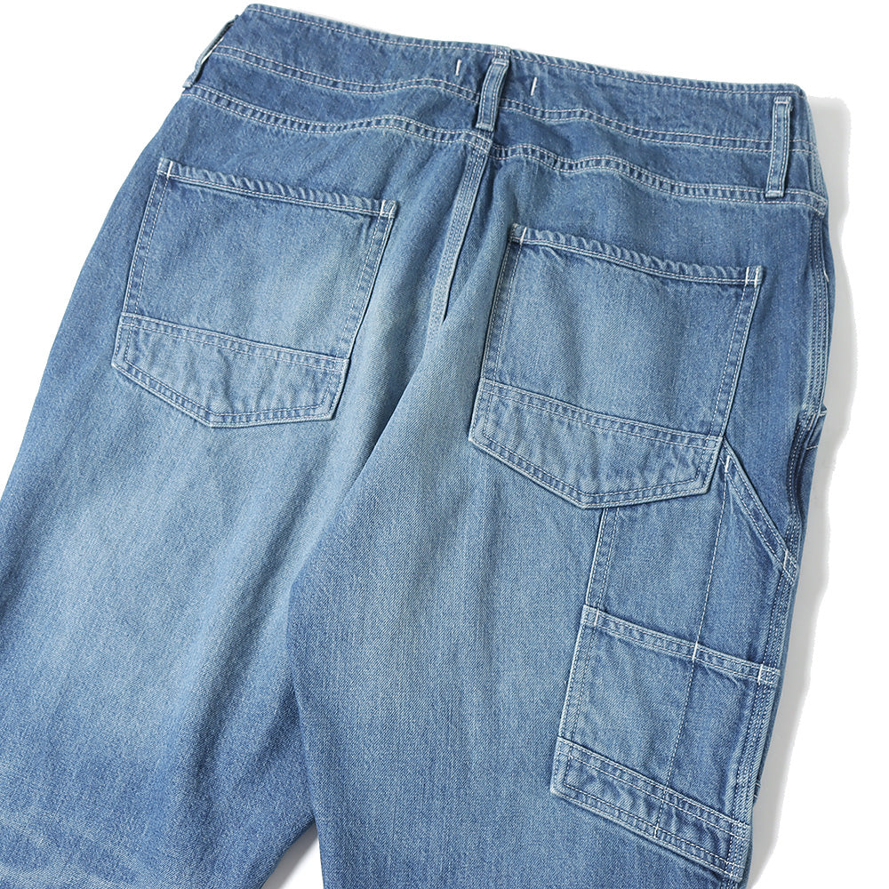 膝に切替のステッチを入れ、ツールポケットを配したデニムペインターパンツ。