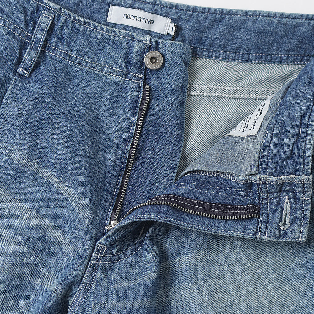 10ozの柔らかな素材感と深い股上、ワンタック仕様のワイドでリラックスしたシルエットが特徴です。