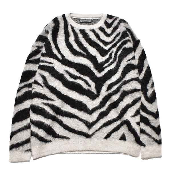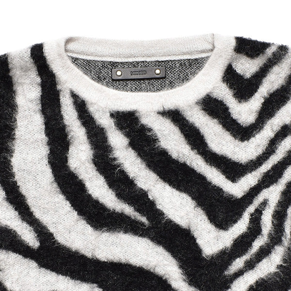 ・キッドモヘアを高い割合で混紡した最高級のモヘア糸を使用し、軽やかで上質な風合いを実現したオリジナルゼブラパターンジャガードニット