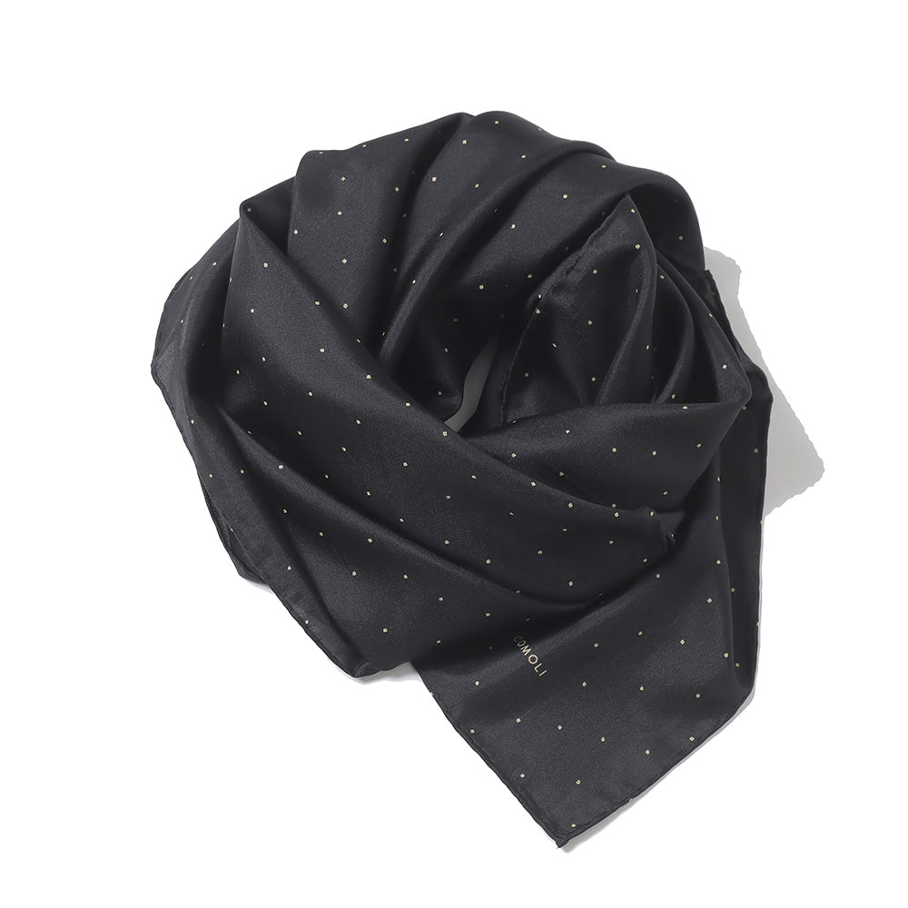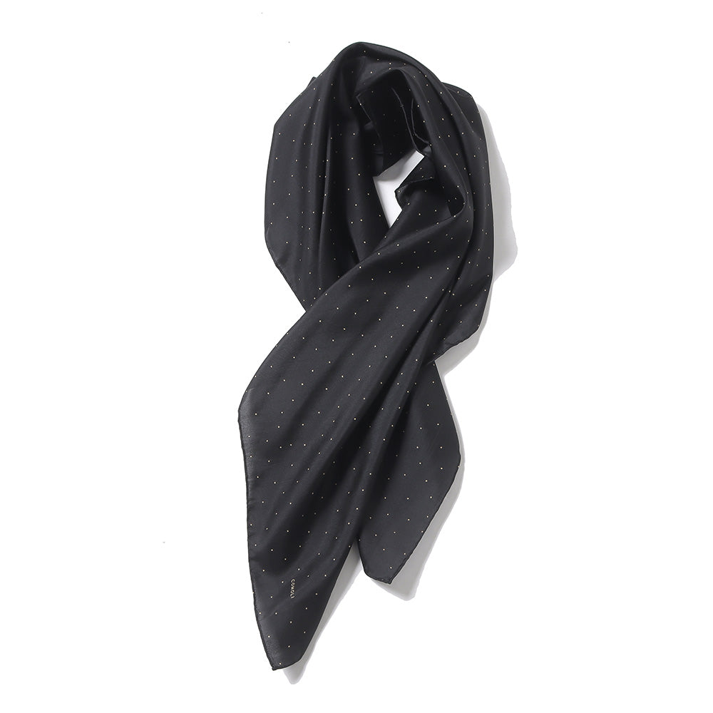 シルクドットのスカーフになります。シルクの上品な光沢があり、心地よい肌触りに仕上げています。