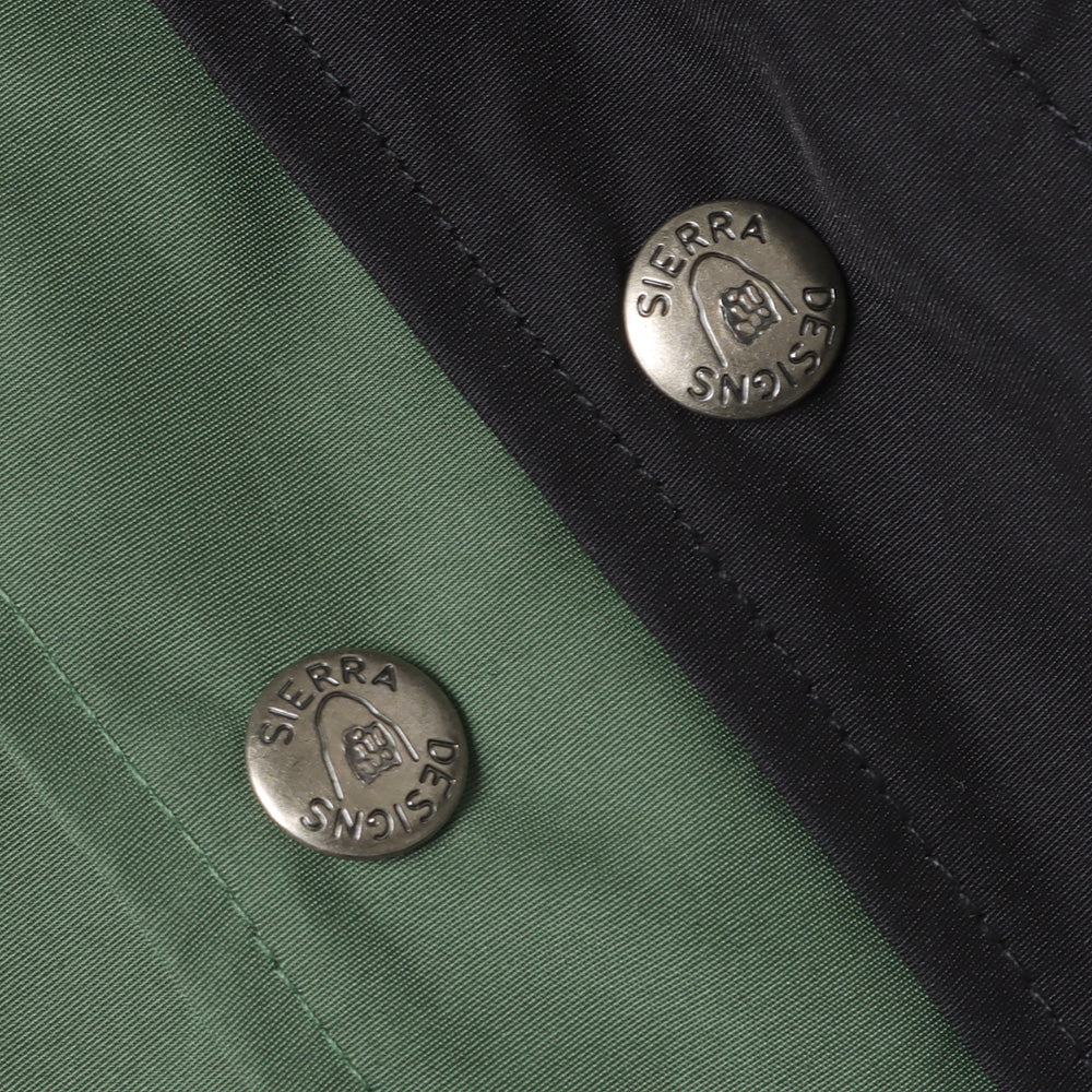 SIERRA DESIGNS(シエラデザインズ)マウンテンパーカーの生地の60/40クロスとは、横糸に綿60%、縦糸にナイロンを40%の比率で織り上げられた生地の事でその比率から通称ロクヨンクロスまたはロクヨンと呼ばれている。 横糸の綿が水を吸って膨張すると、糸の間の目が詰まり、水を通しにくくなります。それにナイロン特有の撥水性能が合わさり、水をはじくことができるようになります。つまり、濡れることによってはじめて撥水機能が生まれるのです。 横糸に綿を60%、縦糸にナイロンを40%使ったこの配合は独特の光沢と風合いを醸し出します。
